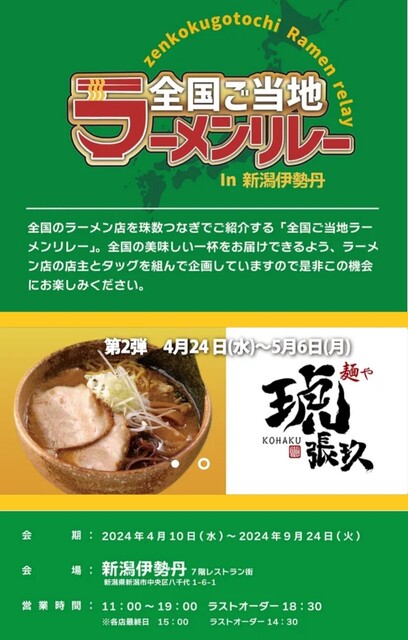 第2弾は4/24(水)〜5/6(月)、札幌「麺や 琥張玖」
