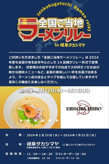 第10弾は5/22(水)〜6/3(月)、愛知・名古屋「えびそば 緋彩」