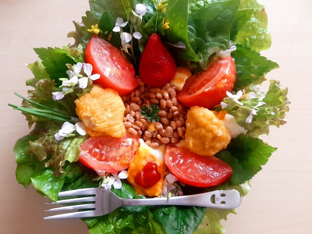 畑は春菊が終わり、サニーレタスが上に伸び始め、大葉が登場