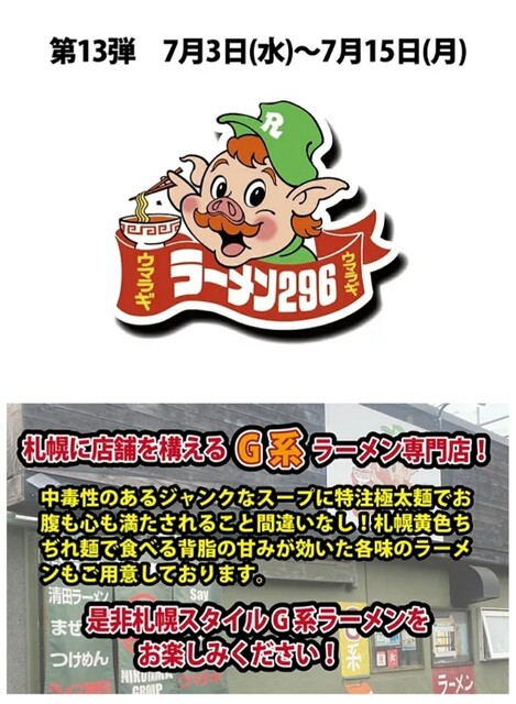 第13弾は7/3(水)〜7/15(月)、北海道・札幌「ラーメン296」