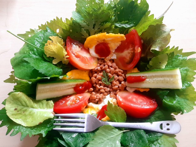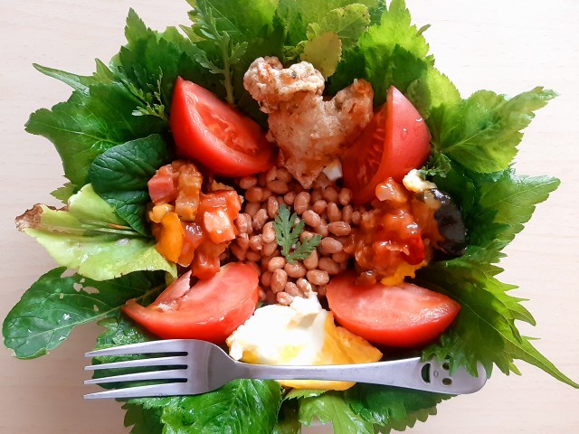 (現在の畑は、三つ葉と大根の葉とわけぎとサニーレタスと大葉ときゅうりと茄子といんげんと小松菜)