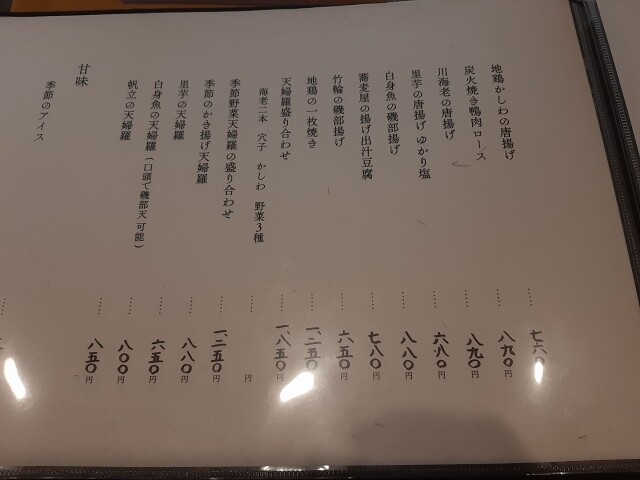 太白胡麻油などをブレンドした油を用いた天婦羅も風味とサクサク感が全面に出てます。