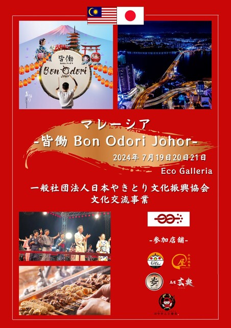 マレーシアはジョホールバルで開催される世界最大級の盆踊りイベント「皆働 BON ODORI JOHOR」に協会員を派遣して、やきとりブースを出展いたします。
