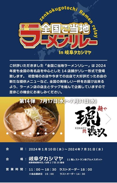 それに伴い、約6年続いた全国ご当地ラーメンリレーin岐阜タカシマヤも本日まで。