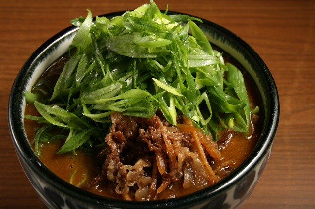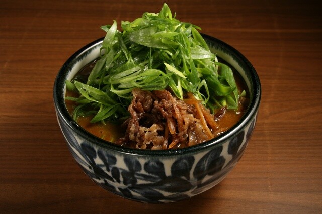 甘辛く炊いた牛肉や九条ネギも。