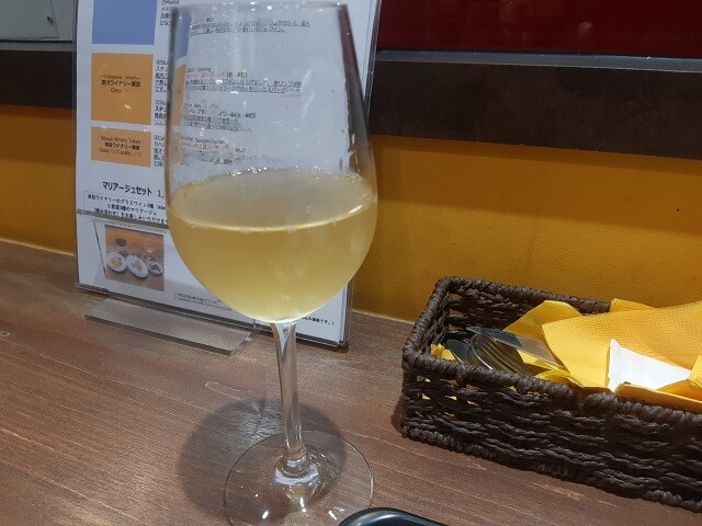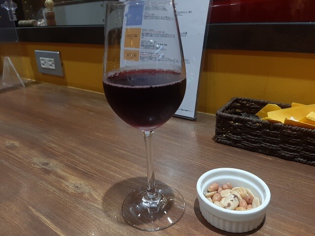 この後にゲート内のJALラウンジでビールをいただくので、ワインは3杯だけ。