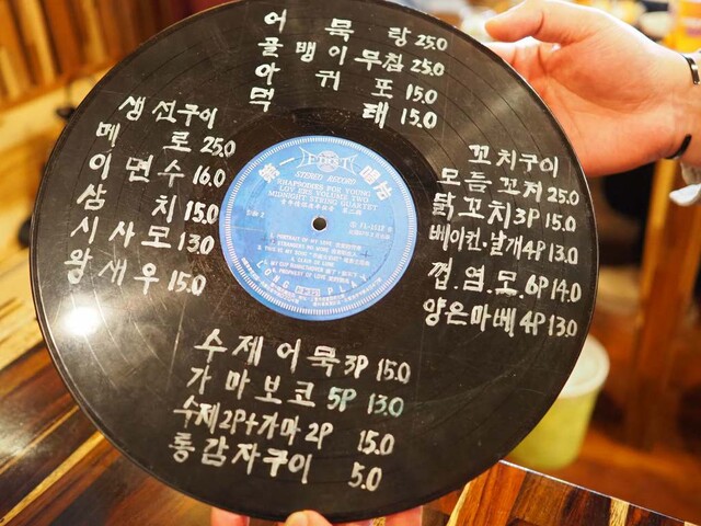 メニューがLPレコード盤!韓国のアーティストみたい。