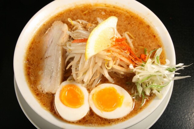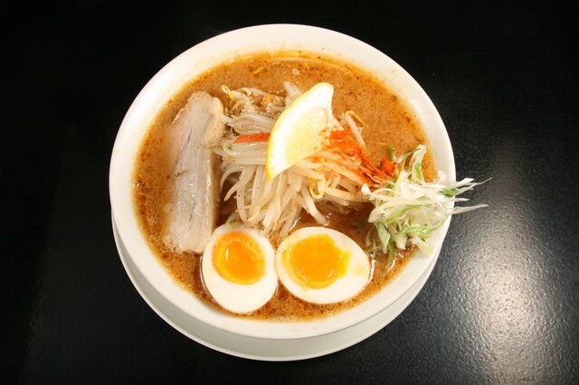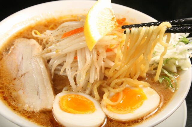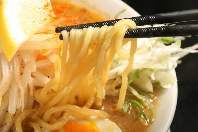 トンコツをメインに鶏も用いて北海道や山形など3種類の味噌をブレンドしたコク豊かな無化調スープです。