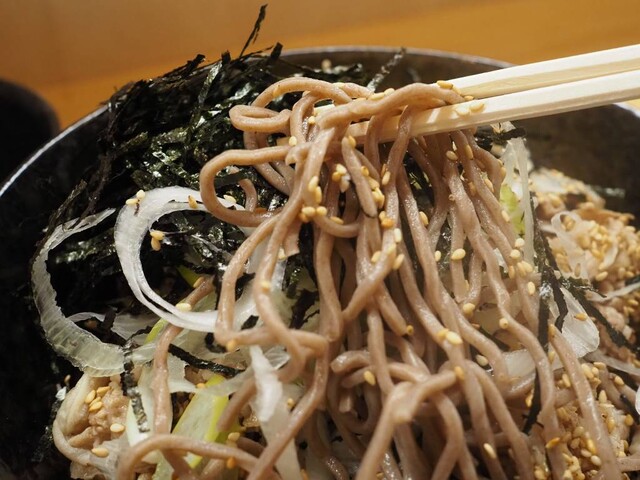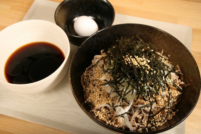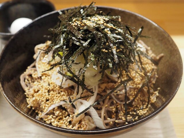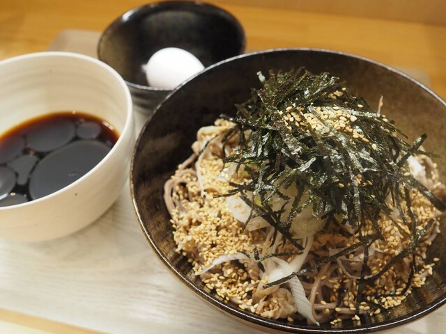 いただいたのは「にく蕎麦 (冷ラー油つけ蕎麦)」