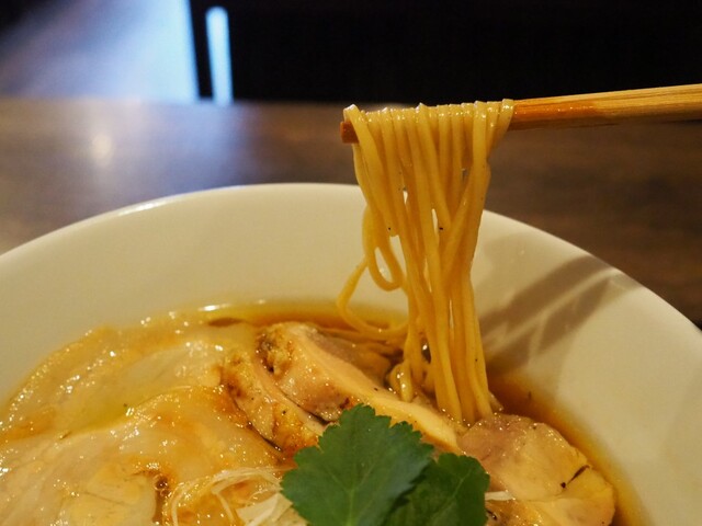 純系名古屋コーチンの丸鶏などと水のみで取った“水鳥系”の醤油スープは、