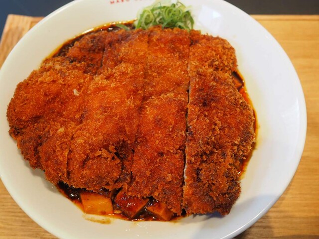 鶏もも肉のチキンカツもドカンと載り、辛み、痺れ、うま味、甘み、コク、奥深さを兼ね備えてます。