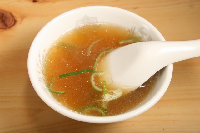 チャーハンには玉子と長ねぎ入りの中華スープも付きました。スープは丸鶏と豚を使用。