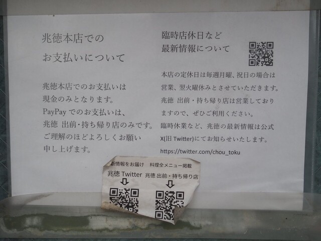 他のメニューも気になります。特に、にんにく不使用の手作りの餃子とか。そんな「兆徳」は余りの人気故に、西側の数軒隣に持ち帰り専門店も出来ました。