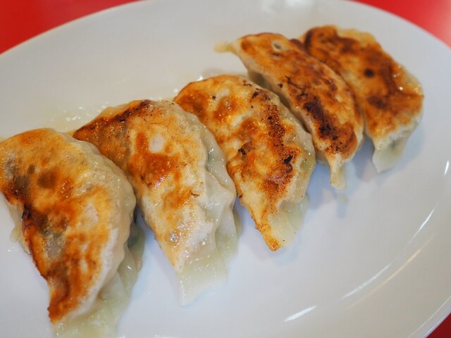 「麒麟」では他にもオススメの料理が多いです。「元祖焼き餃子」。これがまた、凄く美味しい! 豚肉とキャベツ、白菜、ニラ入りで肉汁たっぷりでふっくら。皮ももちもち&香ばしい! 流石は手作りの良さが全面に出ます。