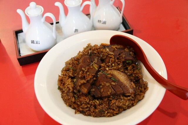 ちょっとした異彩というのは、通常のチャーハンの他に看板メニューの一つ的な「トンポーロー炒飯」がある点です。日本のお米を用いて中華鍋を駆使して作成するそれは、少量の油と甘さも伝わる中国醤油、牡蠣の旨みも加わるオイスターソースで構成され、濃いブラウンの彩りをした、パラパラ系の仕上がりです。炒飯自体も独特の美味しさがありますが、そこに勿論自家製の分厚いトンポーローが加わっているのです。所謂、煮豚なのですが、まさに香りが中国。八角、桂皮、月桂樹を用いた味付けで異国情緒たっぷり。ガチ中華の店舗では無いのですが、スタッフも皆さん中国系のようで、中国旅行気分も少し味わえたりします。とは言え日本語も話せる方もいるので安心。