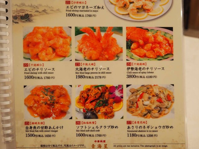 創業者の林 友華さんは福建省の出身で、現地で料理を約10年の後、来日して横浜中華街で平成4年(1992年)に「青海星」を始めました。広東料理が中心ですが、辛いタイプや点心もあったりと、やや幅広い印象。麺、飯などのセットも多く、価格的にはリーズナブルな設定で、今でも友華さんが厨房に立ちます。現在は二代目である息子の林 堅さんが社長。堅さんが小学生の時に一緒に来日したそうで、故に今では中国語も日本語も話せます。今回伺った新館は2021年にオープン。借地(一帯は社団法人が所有とか)ですが、建物は購入したので自社ビルです。1〜3階があり、清潔感も漂う店内で、BGMに中国の曲が流れていました。スタッフも全員が中国人だそうです。