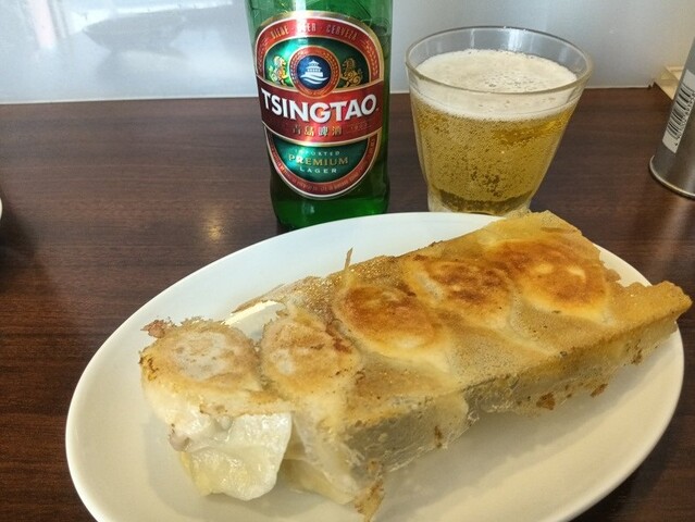 「羽根付き焼餃子」と「青島ビール」を頂きました。