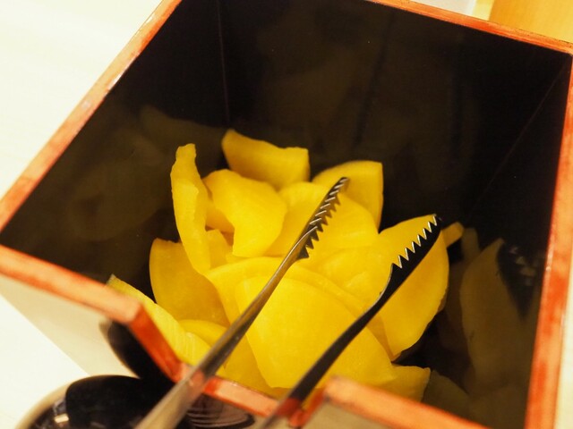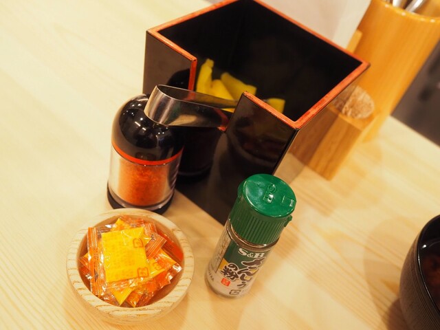 卓上には、たくあんとか一味とが山椒とかがあり、味の変化も楽しめます。