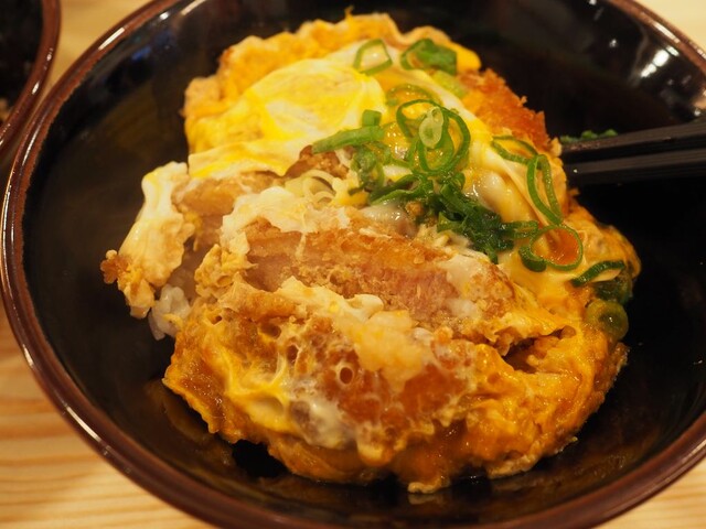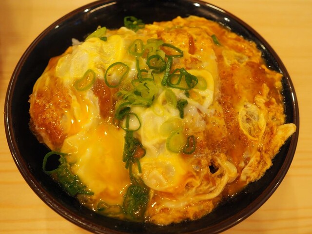 玉ねぎは使用せず、玉子と蕎麦つゆベースの出汁と豚肉だけのシンプルな玉子とじかつ丼。飽きの来ないあっさりとした味わいの看板メニュー。