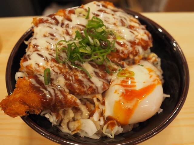 少し辛めのコチュジャンベースとマヨタレと温泉玉子の組み合わせがクセになるかつ丼。