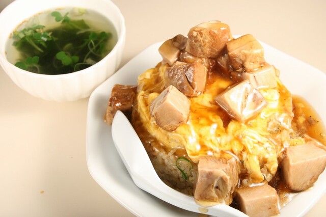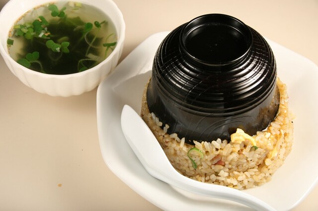 香川米ひのひかりを用いた、刻み燻製チャーシューの香ばしさが活きる炒飯の上から、