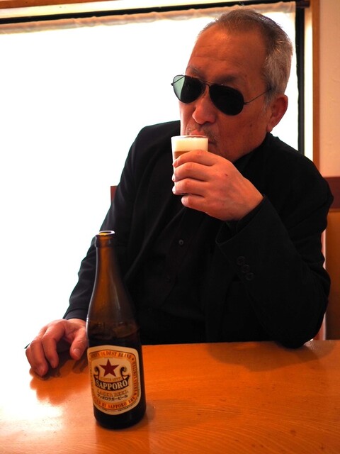 お店にいたら、途中から先輩も登場。瓶ビールと「ようちゃん冷奴」「おつまみ3点盛り」でオーラ漂ってたので撮影 笑