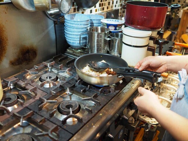 驚いたのはフライパンな点。火力も弱めなので、あおったりしません。