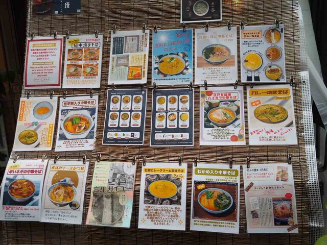 佐藤養悦(佐藤養助ではありません)の乾麺である稲庭中華そばを用いたメニューや幸せの黄色いカレー、きらく焼きなど興味津々のメニューがあります。