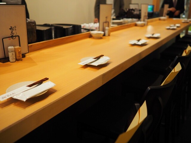 店内は、木の温もりと和の趣が調和した、シンプルな和モダンな空間です。