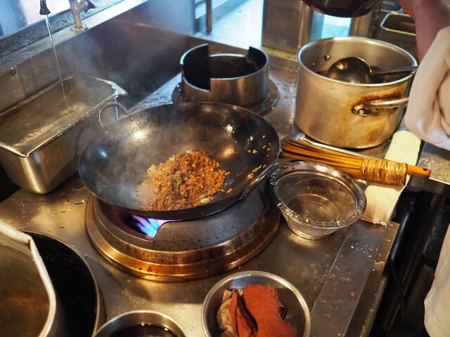 広東鍋に長野産コシヒカリと白絞油ベースで、塩、調味料、胡椒のほか、中国醤油の優しい甘さも活きます。パラパラな仕上がりも見事です。