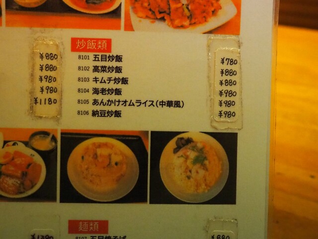 「五目炒飯」「高菜炒飯」「キムチ炒飯」「海老炒飯」「納豆炒飯」もありますが、
