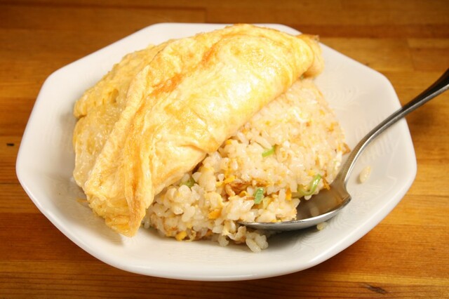ふんわり優しい玉子の下には、しっとりとした爽やかな味わいの炒飯が。