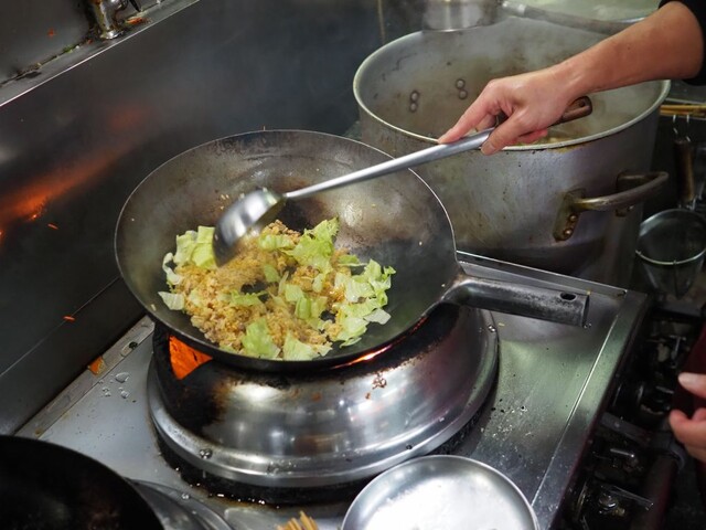 後半に数度の醤油で香り付け&スープの“上澄み油”も合わせてコクを加えていました。