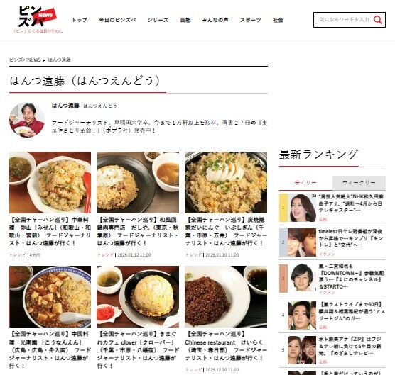 ネットニュースサイト「ピンズバNEWS」でのチャーハンの連載