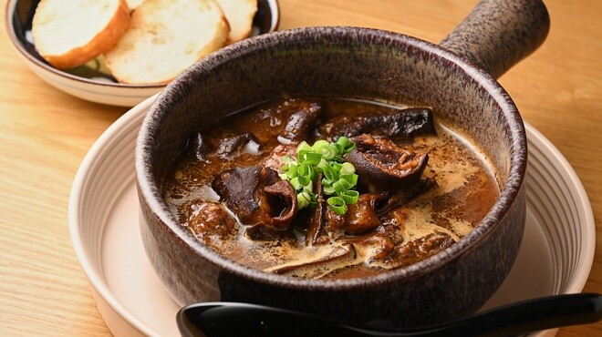 こちらも豚ではなく、牛ホルモンを使い、デミグラス風に仕上げたコク深いもつ煮込み。バケットとの相性もぴったり