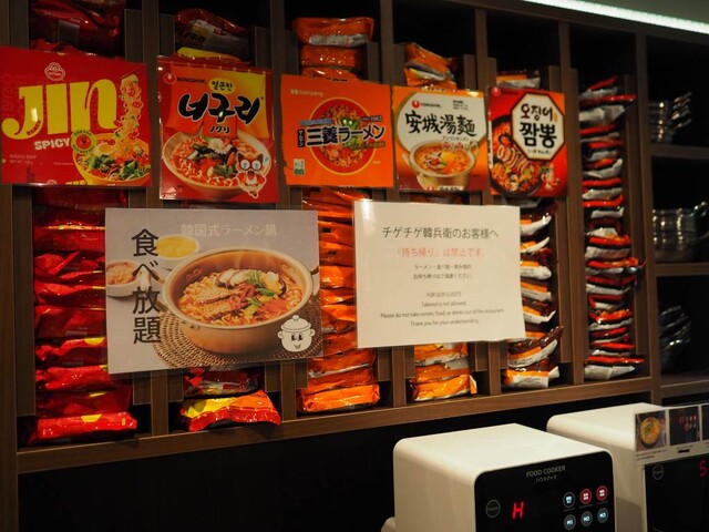 さらに、数種類の韓国袋めんも揃えていて、鍋の〆や、ラーメンマシンで調理して