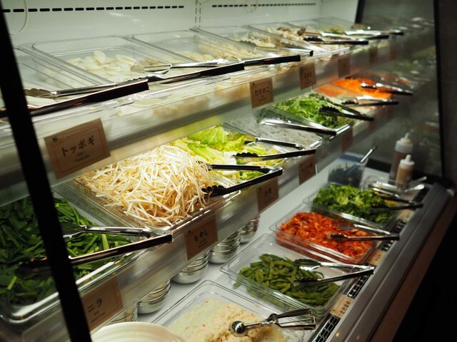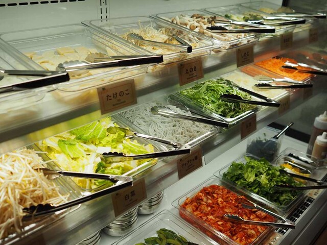 野菜などの具材はセルフ方式で、好みに応じて自由に組み合わせるスタイル。